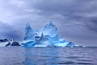 Beim Abendessen springen Jürgen und Sandra auf, als neben dem Schiff ein Eisberg mit Pinguinen vorbeischwimmt. Gleichzeitig werden Wale gesichtet und ein wenig bereuen wir es, heute das formale Abendessen im Restaurant gewählt zu haben. Aber was sollen wir bei dem Wetter schon verpassen? An schönen Tagen kann man hier mit spiegelglattem Wasser und von der Sonne beschienen Bergen rechnen, doch heute hat das Paradies geschlossen und dort, wo sich die Wolken ein wenig heben, können wir bei einem Blick durch das Schaufenster ahnen, wie schön es sein könnte. Da wir heute Morgen die erste Gruppe bei der Zodiac-Tour waren, sind wir nun die letzten. Unser Termin ist 22.30 Uhr, also nach Sonnenuntergang und wir sind nicht begeistert. Nun liegen wir also hier in der Paradiesbucht, sehen blauweiße Eisberge und Wale in der Entfernung und warten auf die Dinge, die da kommen könnten. Und sie kommen… in Form kleiner heller Flecken am Himmel, die immer größer werden und sich zu blauen Himmelslöchern zwischen den dichten grauen Wolken entwickeln. Auf einmal sind die Zodiacs gar nicht mehr so wichtig, denn von Bord haben wir den besten Blick auf die sich bildende tolle Lichtstimmung. Und trotzdem es nicht für ein direktes Sonnenlicht auf den Gletschern reicht, scheint es doch so, als hätte man das Paradies extra für uns doch noch geöffnet. Nur Sigrid möchte noch die Zodiac-Tour machen, Sandra, Andrea und Jürgen wollen lieber an Bord bleiben und die Lichtstimmung genießen. Doch plötzlich kommt Unruhe an Bord auf. Einer der Wale in der Bucht ist dicht neben einem der Zodiacs aufgetaucht und taucht direkt darunter hindurch. Danach nähern sie sich dem Schiff und tauchen daneben ab. Da zur gleichen Zeit das Licht nun verschwindet und unsere Zodiac-Gruppe aufgerufen wird, entscheidet sich Sandra blitzschnell um, rennt in die Kabine um sich Gummistiefel anzuziehen und begibt sich zur Zodiac-Pforte in der Annahme, schon recht spät zu sein. Dort rutscht sie einfach in eines der Zodiacs hinein und später stellen wir fest, dass sie wohl noch in die Vorgruppe geraten ist. Aber was macht das schon. So sitzen wir also dieses Mal in getrennten Zodiacs, betreten zum ersten und einzigen Mal das Festland der antarktischen Halbinsel und cruisen vor dem Gletscher, wo es gerade vor einigen Minuten kleinere Abbrüche gab. |