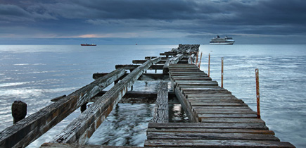Als wir wieder eine richtige asphaltierte Straße erreichen geht es weiter in Richtung Norden. Wir wollen der verwaisten Estancia San Gregorio einen Besuch abstatten. Die Estancia liegt an der Magellanstraße. Der portugiesische Weltumsegler Fernando Magellan ist im Jahre 1530 als erster Europäer an dieser Küste gelandet. Die Meeresstraße ist 600 km lang und war der Schlüssel für die Umrundung der Erde. Die seit 1881 zum chilenischen Hoheitsgebiet gehörende Verbindung zwischen Atlantik und Pazifik öffnete seinerzeit einen Weg in den Westen, damit das gefährliche Kap Hoorn vermieden werden konnte. Und wie wir hier in San Gregorio sehen, haben es einige auch auf diesem Seeweg nicht geschafft. Die Wracks der beiden gestrandeten Schiffe leuchten im sonnigen Mittagslicht und geben für uns einige schöne Fotomotive. Die Estancia San Gregorio soll 1876 gegründet worden sein. Heute ist sie ein Geisterort. Die Häuser der Estancia sind leer und verwahrlost. Einige Möbel stehen noch in den Räumen. Aber der eigentliche Grund unseres Besuches sind die zwei gestrandeten Schiffe. Dampfschiff „Amadeo“, gebaut 1873 und nach 59 Jahren hier an der Magellanstraße im Jahre 1932 gestrandet. Auch das Segelschiff „Ambassador“ ist in den dreißiger Jahren hier gestrandet. Inzwischen ist es 16.00 Uhr geworden und wir machen uns auf den Rückweg. Am Straßenrand sehen wir Nandus, Schafe und Guanakos. In Punta Arenas angekommen fahren wir noch schnell zum Supermarkt und holen noch einige Lebensmittel und Kuchen zum Kaffee. Wir lernen ein neues und für die nächsten Wochen hilfreiches Wort: Facturas sind kleine leckere Kuchenstücke mit Marmelade oder süßer Karamellcreme gefüllt. Nach einer Ruhepause machen wir uns auf den Weg zum Hafentor. Wir wollen nach der Abfahrtszeit der AIDAcara fragen… gar nicht so leicht für Nichtspanischsprecher. Nach ein paar Versuchen erfahren wir, dass um 20.00 Uhr das Schiff ablegen soll. Wir schauen uns noch das andere Ende des Ortes an. Das Wetter zeigt sich von der dramatischen Seite. |